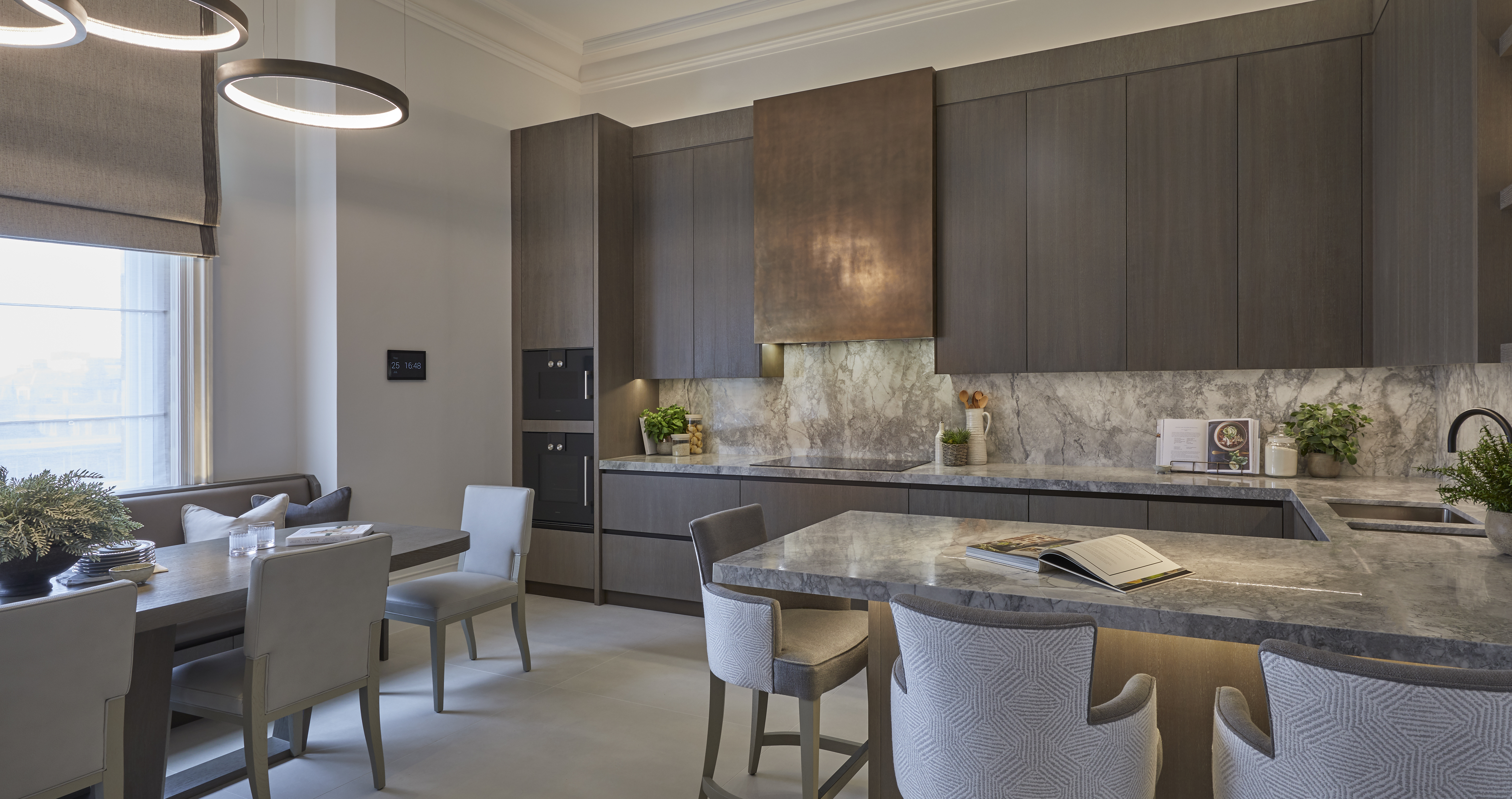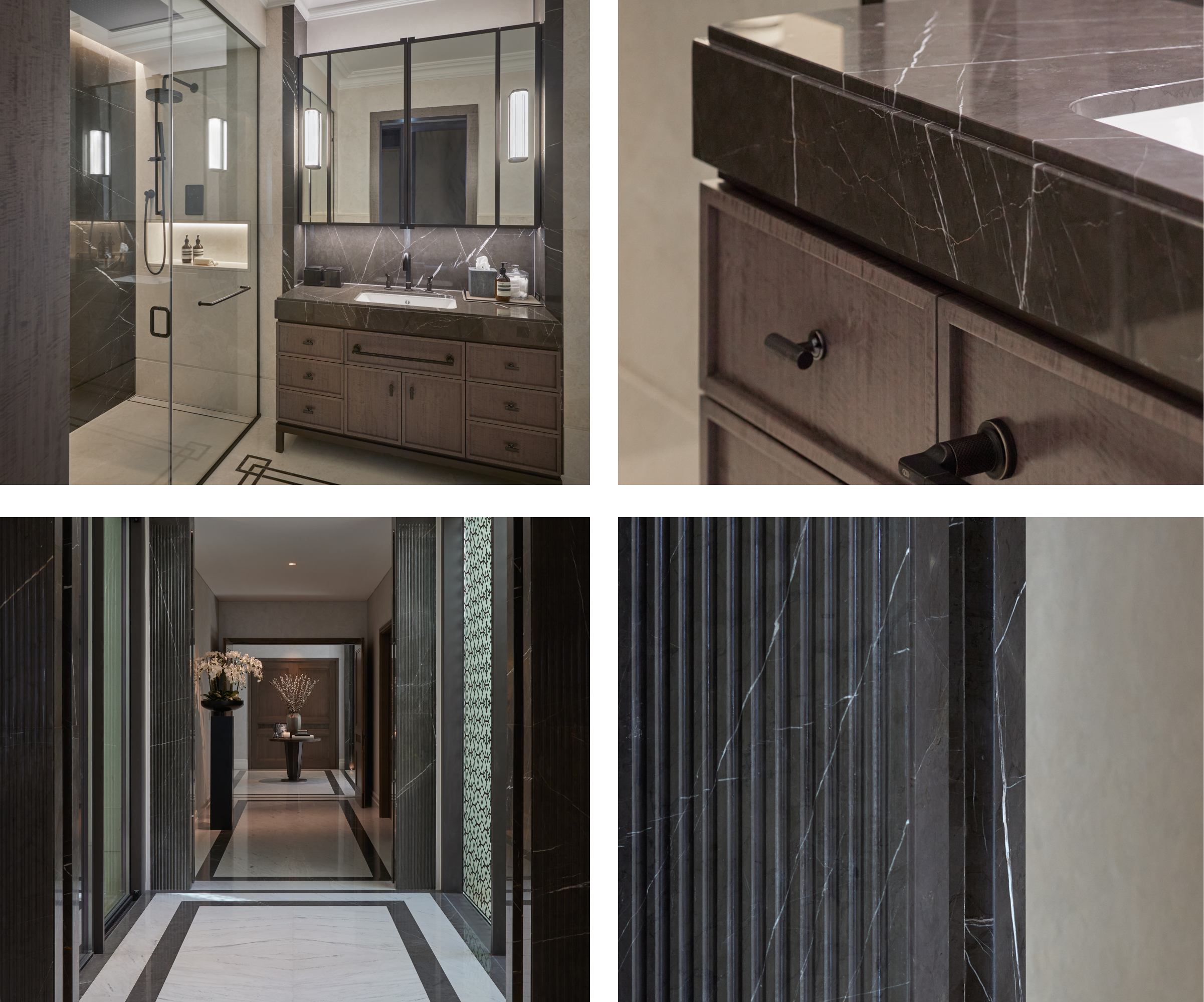 Soft, smoky tones and subtle linear veining define Pietra Grey. It has a contemporary, masculine feel that instantly elevates a space and adds a sleek sense of luxury. We often use it in more monotone palettes, where its depth and movement bring understated drama.